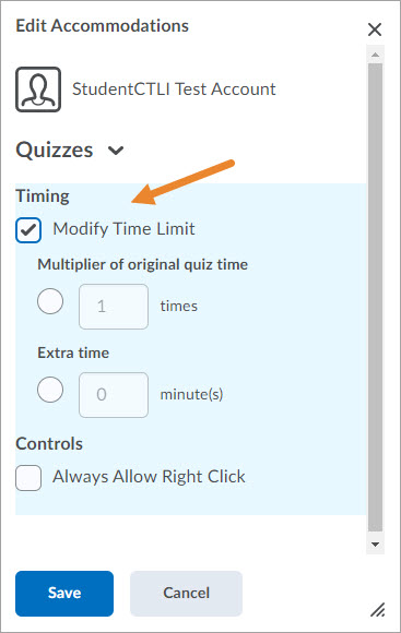 Students may require extra time for tests and exams. Faculty can add accommodations to student profiles, which will extend to all Brightspace quizzes.